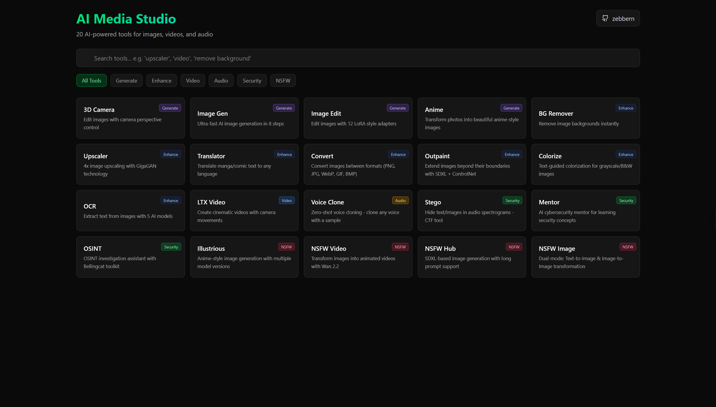 20 AI-powered tools for images, videos, and audio - including upscaling, generation, and security tools