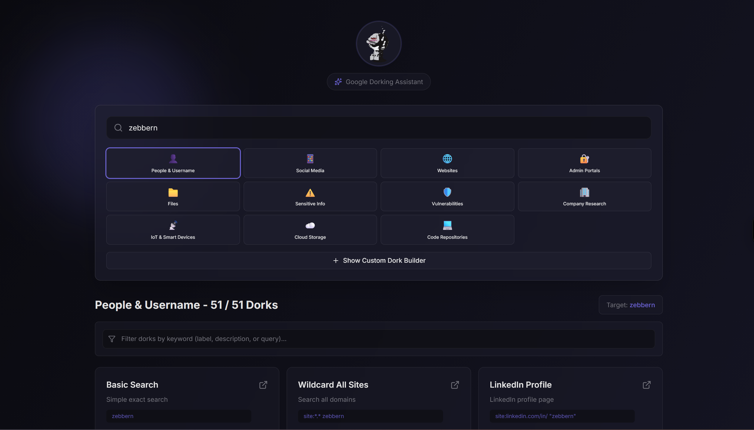 Google dorking tool for advanced search queries and OSINT reconnaissance
